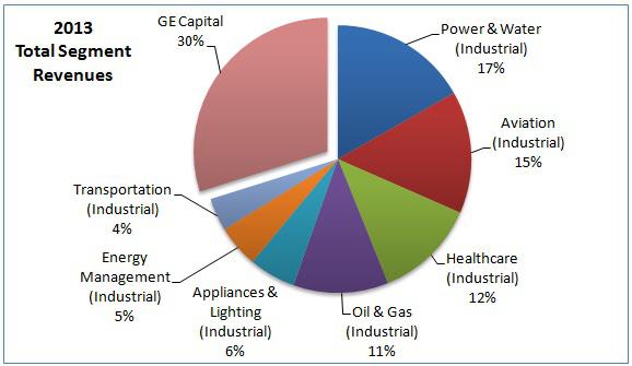 Break up of total segment revenues for 2013, Source: GE Annual Report (link opens a PDF).