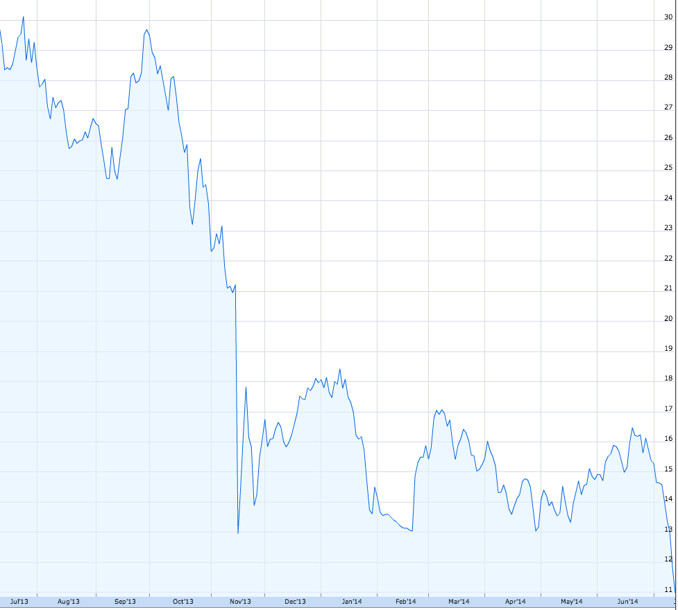 Source: Google Finance. A 63% drop in price signals a buying opportunity.