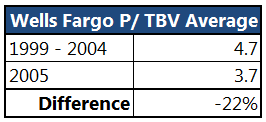 One key metric used by investors to gauge a bank's relative value is the price-to-tangible book value. Wells Fargo watched its fall as the decade progressed: