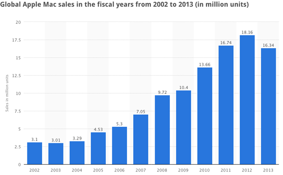 This comes as Apple experienced a drop in yearly global Mac sales in 2013, the first since 2003.