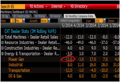To add to its woes, Cat's energy and transportation sales are also down on the back of weak power generation and transportation demand. Despite an easy comparison of 10% decline in May of last year, power sales slipped by 13% in May 2014. We will get more clarity on industrial demand when General Electric reports its earnings on July 18.