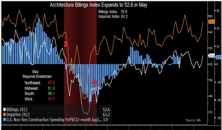 One of the major indicators of construction equipment demand in the U.S. is the American Institute of Architects' Architecture Billings Index (ABI). The ABI helps to predict non-residential construction activity in the following nine to twelve months, and a score higher than 50 means increased billing or expansion. As per a Bloomberg report, the ABI leapt to 52.6 in May, the highest level seen since September 2013; maximum strength was seen in the South and Midwest, with readings above 50.