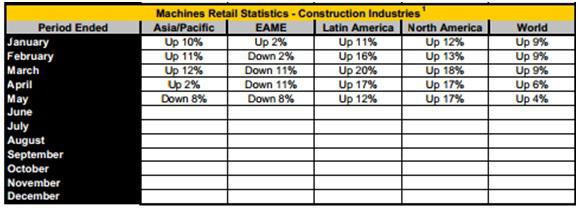 2014 Construction Machinery Retail Statistics, Source: Caterpillar