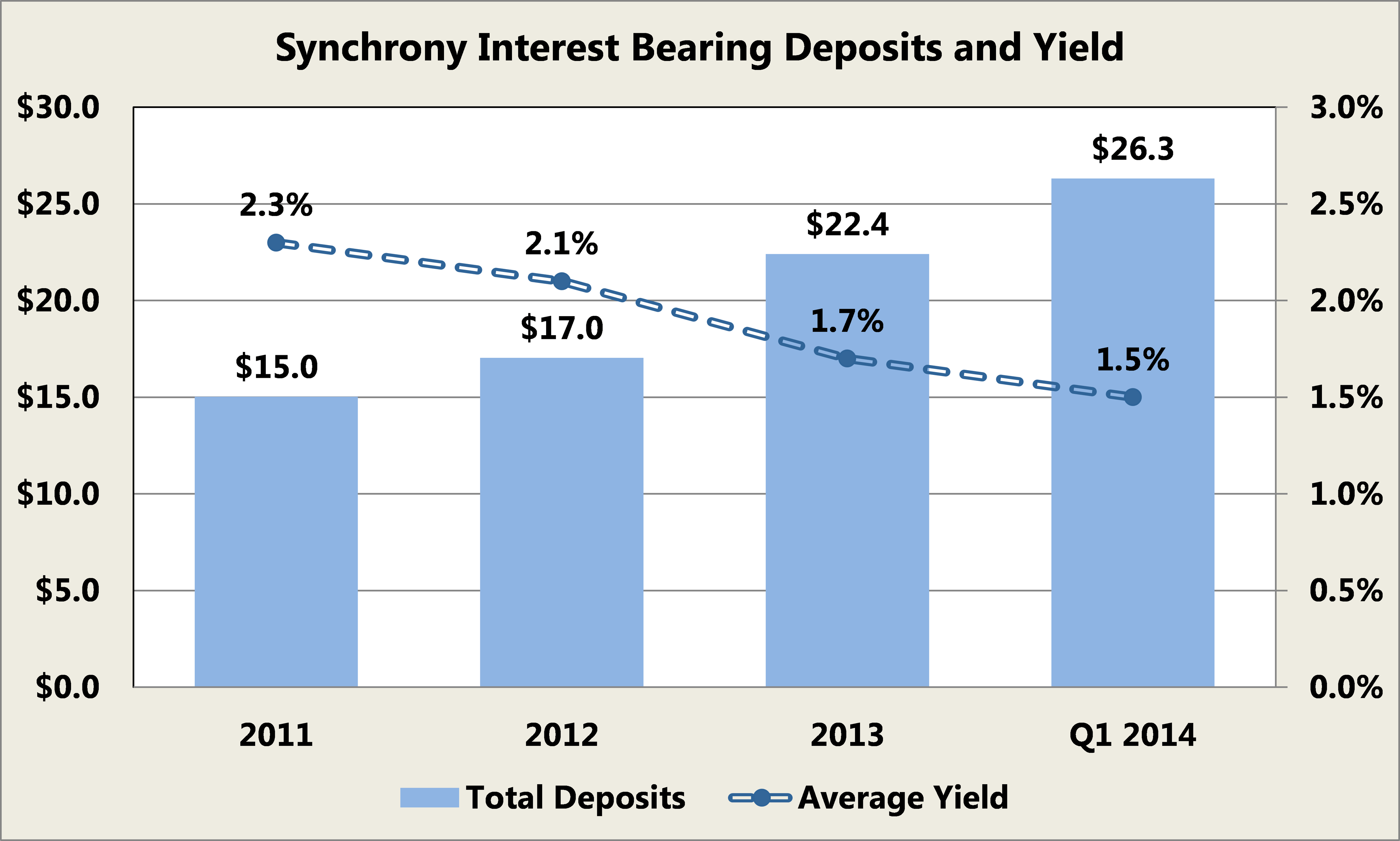 With the expanding deposit footprint into lower cost options, Synchrony has done an incredible job at borrowing more, but at a lower cost. And any further expansion of its deposits in the future will only continue this trend: