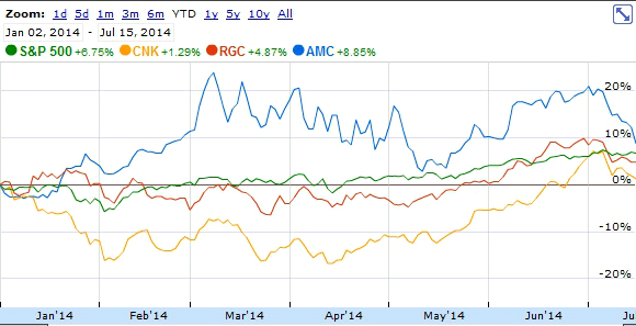 Since its IPO in December of 2013, AMC Entertainment (AMC +2.20%) has outperformed rivals Regal Entertainment (NYSE: RGC) and Cinemark (CNK +7.06%) on the stock market. Year-to-date, AMC Entertainment has remained the best of class, doubling the total return of Regal Entertainment while crushing Cinemark, which has remained mostly flat in 2014.