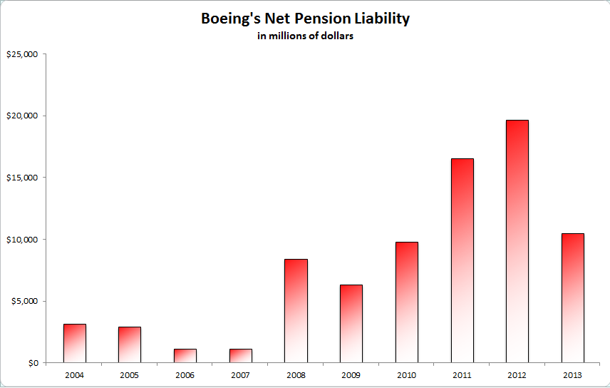 For the full year 2014, Boeing is projecting that its pension expense will check in around $3.2 billion. Put another way, that's the same amount that management plans to spend on research & development this year, and just slightly more than its capital expenditures which are expected to be roughly $2.5 billion.
