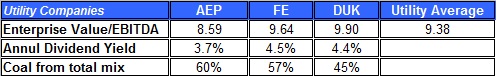 As you can see, based on enterprise value to EBITDA ratios, American Electric Power has the lowest valuation. Further, the company's current value is even below the industry average. This makes the company's stock low with more room to grow compared to its peers.