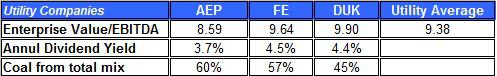 The main component of American Electric Power's fuel mix is coal -- nearly 60%. For a better comparison, I have taken two companies that also heavily rely on coal as their energy source. For Duke Energy (NYSE: DUK), coal accounts for 45% of its fuel mix. 57% of FirstEnergy's fuel mix is coal.