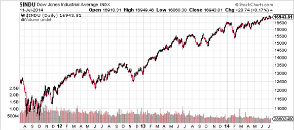 On July 3, 2014, the Dow Jones Industrial Average established an all-time intraday high of 17,074. The date was a capstone to a quiet, yet powerful stock market move from the depths of the 2008 housing bust and credit crisis. This latest run-up in share prices, however, may have actually occurred amid a period of economic contraction. A recently revised report out of the U.S. Commerce Department indicated a 2.9% annual decline in gross domestic product through the first calendar quarter of 2014.