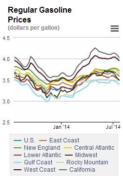 According to AAA, this latest price decline comes in spite of rising geopolitical tension. While the Israeli-Palestinian conflict rages on and Malaysian Airlines Flight 17's Ukrainian crash sparked international tension, oil markets remain unfazed by both international issues because there has not been an impact to supply or distribution, said AAA. It also noted that domestic refinery utilization reached its highest level of the year last week, which helped push gas prices lower.