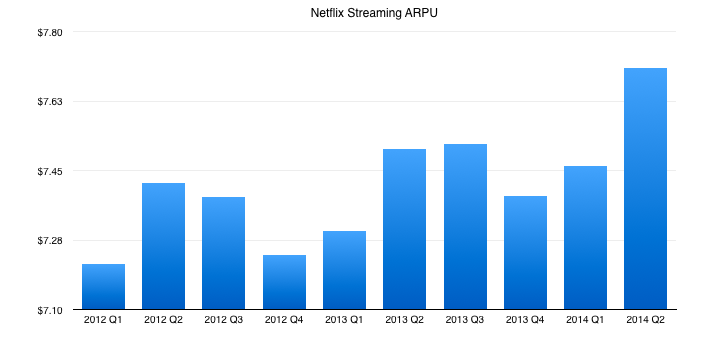 But the hike is already starting to be felt in Netflix's financial results. Take a look at the company's average revenue per user, or ARPU. That figure climbed to new high last quarter of nearly $7.80 per month.
