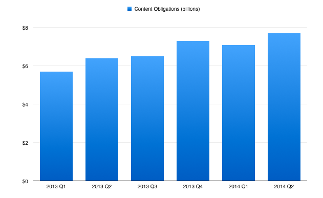 Ambitious doesn't come cheap, though. And you can see evidence of a big ramp-up in content commitments by way of Netflix's streaming content obligations. Those rose by $600 million since the prior quarter and now total close to $8 billion.