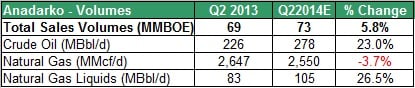 The company's upcoming second-quarter earnings report could curb its progress if it doesn't meet the quarterly guidance. The table below shows guidance for the average sales volume of oil, natural gas, and natural gas liquids during the second quarter of 2014 and a comparison to last year's.