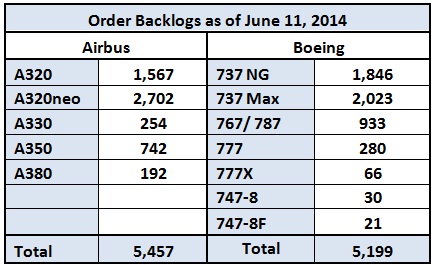 Boeing and Airbus reported a healthy backlog past year, and they have racked up their order count considerably in the current year. At the end of the first six months, Boeing's net order count stands at 499, and Airbus' at 290. As of June 11, backlogs were an impressive 5,199 and 5,457 aircraft for Boeing and Airbus, respectively.
