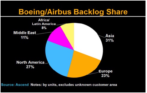 Remarkably, almost one-third of this backlog comprises orders from Asia, and this could grow over the coming months. The Centre for Asia Pacific Aviation (CAPA) has projected that the South Asian low-cost-carrier fleet will increase by around 20% this year.