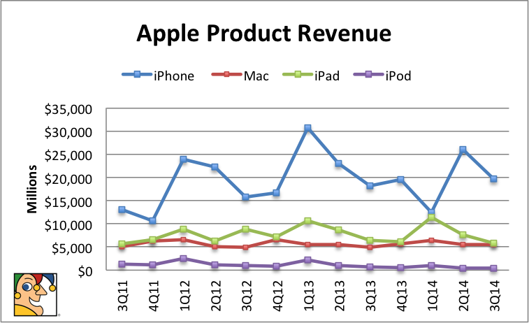 Apple (AAPL +0.46%) shares closed Tuesday nearly flat, following a mixed third-quarter report that featured a few surprises. The company's report closely followed those of competitors Microsoft (MSFT +1.34%) and Google (GOOG 0.05%), and comes less than two months before the expected iPhone 6 launch. What were the product sales drivers of the third quarter?