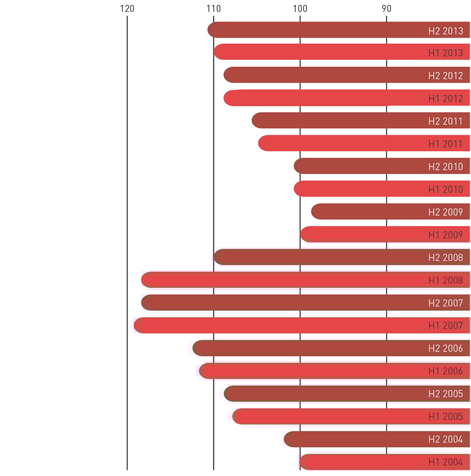 Hotels.com Hotel Price Index: Global Price Changes (2004 Baseline = 100)
