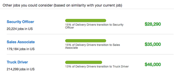 Sabnani said the team realized that not all job seekers can pick up and move. "If relocation is not an option, what other work can we do?" The resulting job progression tool suggests related careers based on job switches that other Glassdoor users have made over the past five years.