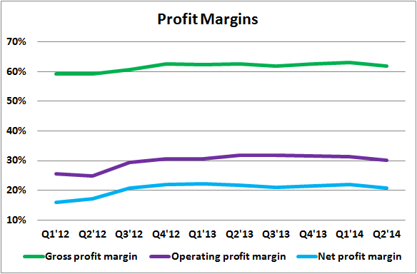 Profit margins across the board edged slightly lower sequentially, which was likely negatively affected from the Fineline acquisition. Because 70% of Proto Labs' customers already take advantage of 3-D printing during the product development process, investors should view any profit margin declines related to Fineline as a way for Proto Labs to own more of the product development cycle. Assuming Proto Labs can maintain its pricing power and grow its overall market share with Fineline, the company should be able to make up for any profit margin declines with increased volume.