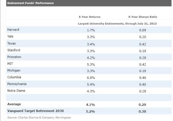 Ben Carlson shows the returns and volatility of the world's largest college endowments vs. a simple index fund. It's sad: