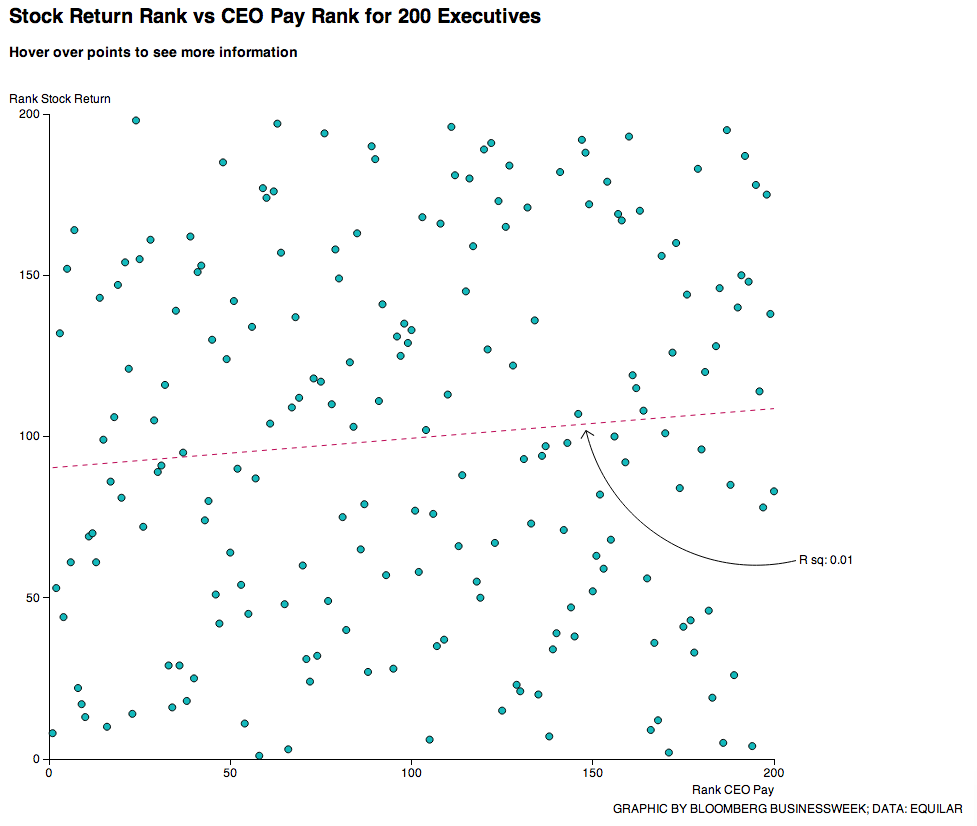 Vox plotted CEO pay against shareholder returns. There's basically no correlation at all: