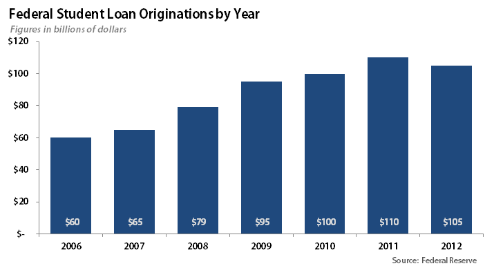 After all, in 2012, Federal Student Loan origination topped $100 billion. An 11% reduction would result in immediate savings of $11 billion in the very first year. And that doesn't even begin to include the additional cost of interest, fees, and finance charges that could be so easily avoided.