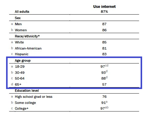 Statistics show that only 57% of people over the age of 65 have the Internet at home, and those with Internet don't necessarily view content through OTT sources.