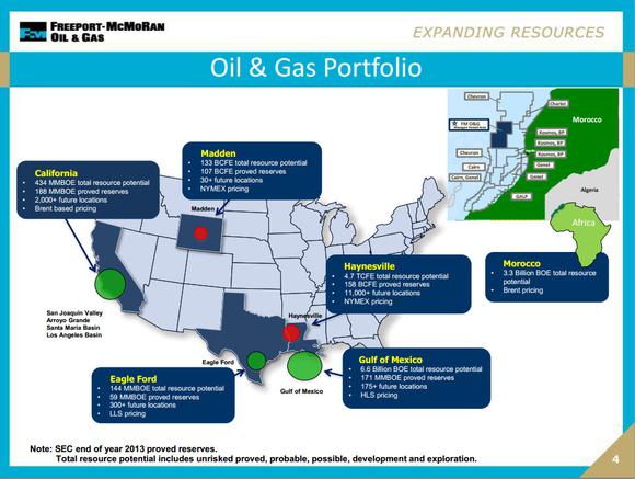 Freeport-McMoRan (FCX 0.94%) spent much of last quarter repositioning the oil and gas business it bought last year. Not only did the company cash in its chips in the Eagle Ford Shale, but it took that money and increased its bet on the Gulf of Mexico. It did that by purchasing Apache's (APA +0.41%) interests in two projects headed by Anadarko Petroleum (APC +0.00%) as well as some exploration prospects. Despite all of the portfolio maneuvering last quarter, Freeport-McMoRan isn't done transforming its oil and gas business.