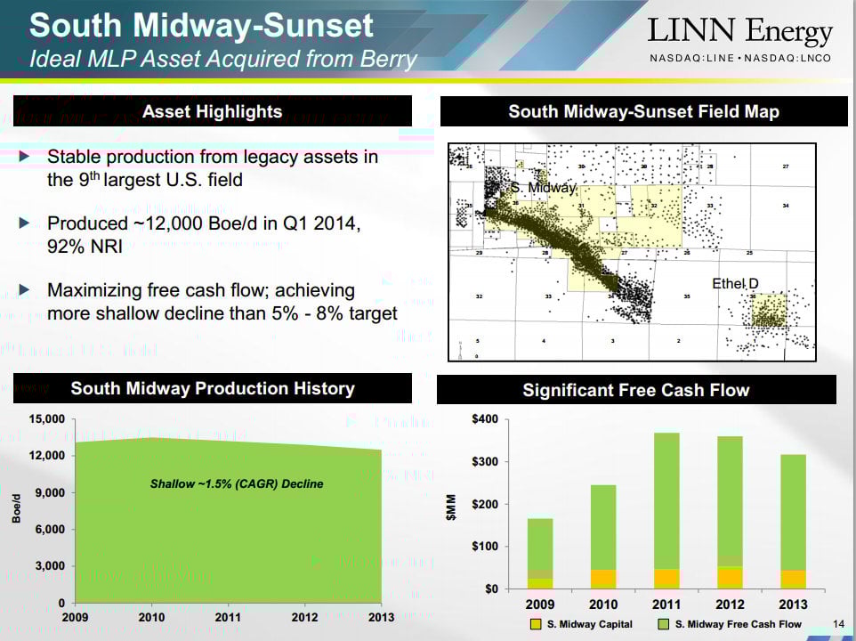 While the Haynesville Shale assets might be of interest to growth focused producers, it's the Madden and California assets that I think LINN Energy should consider buying.