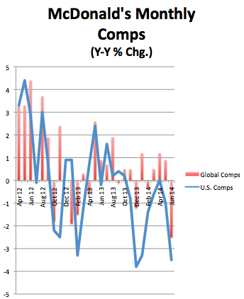 It helps to explain why, since 2011, Chipotle's annual revenues have grown at a 19% compounded annual rate, but McDonald's growth has been a meager 1.56%. Yes, it continues to offer price-sensitive consumers a good deal on dining, but the rest of the market has moved on and is leaving the burger joint behind. It's just-reported second-quarter earnings show the decline it's experiencing continues unabated.