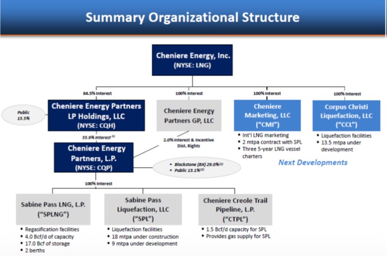 Source: Cheniere Energy Investment Presentation and S&P Capital IQ, author's calculations