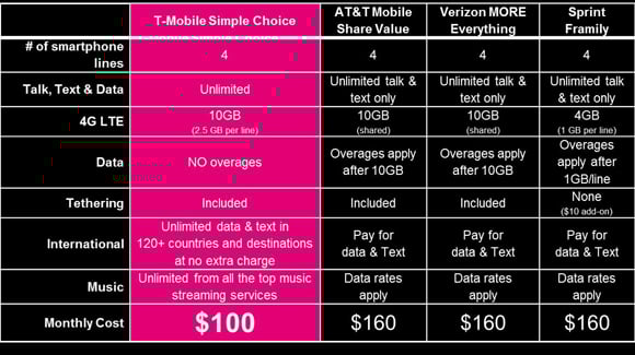How T-Mobile's family plan stacks up to competitors. Source: T-Mobile