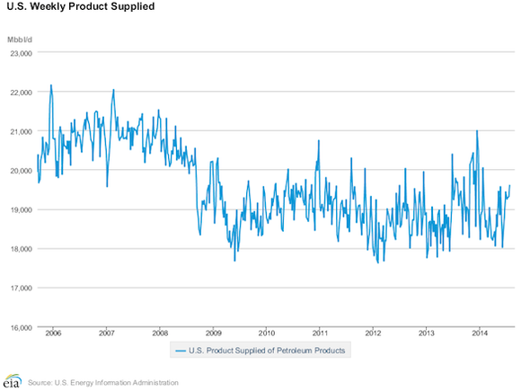 What's surprising is that it's not just an increase in oil drilling that's caused the decline in imports. Declining demand has played a big role as well.