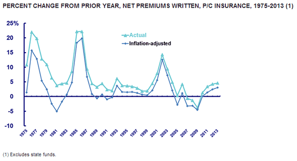 Of course, when profits rise, competition heats up as more insurers seek to find new policies to write, and the cycle starts all over again. Just as it has for the last 40 years: