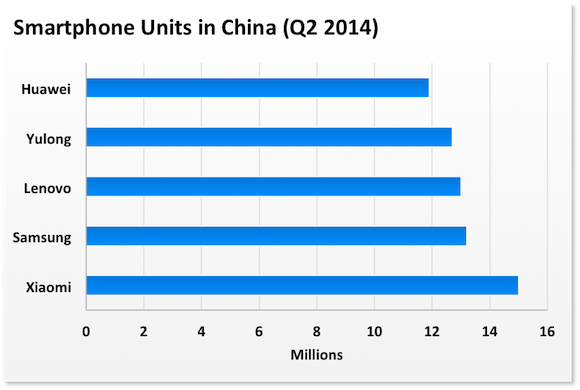 In fact, market researcher Canalys just listed Xiaomi the No. 1 smartphone vendor in the Middle Kingdom after the company shipped 15 million units in the second quarter. That was enough to unseat Samsung, which shipped 13.2 million units.