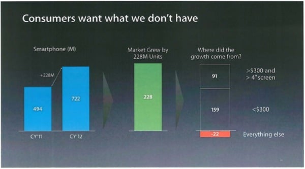 The now infamous "customers want what we don't have" slide. Source: Apple via iphonehacks.com.