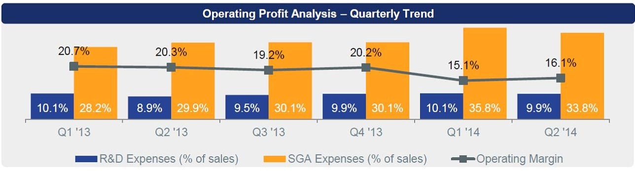 Decreased profitability, however, was expected due to the company's growth strategy of sacrificing short-term profits for spending on activities aimed at fueling long-term growth and capturing market share. Stratasys racheted up its sales and marketing spending in the quarter, which resulted in increased operating expenses, and a lower operating margin.