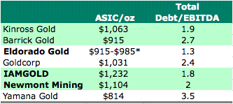 On the surface Yamana Gold (AUY +0.00%) perhaps represents the biggest surprise in that while it maintains an industry-leading low-cost ability to operate, its debt levels have exploded. But if investors recall that was largely the result of its acquiring along with Agnico-Eagle the prized Canadian Malartic mine owned by Osisko Mining, an asset it was willing to engage in a bidding war with Goldcorp to capture, we can see that it remains a top choice for investors.