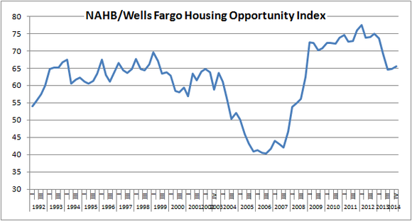 Affordability fell in the second half of 2013, but on a historical basis, it's still supportive of good growth in the housing market. Readers can see that, according to the index, housing is more affordable than it was for most of the 1992-2009 period.