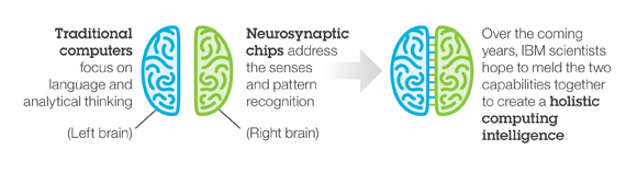IBM says traditional computers focus on language and analytical thinking, while neurosynaptic chips like TrueNorth "address the senses and pattern recognition." The new chip achieves this, in part, by using cores that have memory, computation, and communication built into the same system.