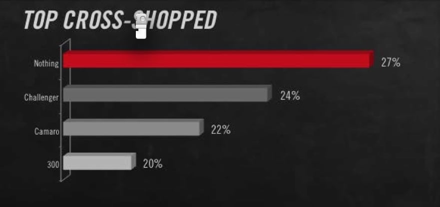 The percentage of buyers who cross-shop the Dodge Charger sedan against key competitors, according to Chrysler data. From a presentation given by Dodge CEO Tim Kuniskis in May of 2014. Source: Fiat Chrysler.