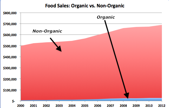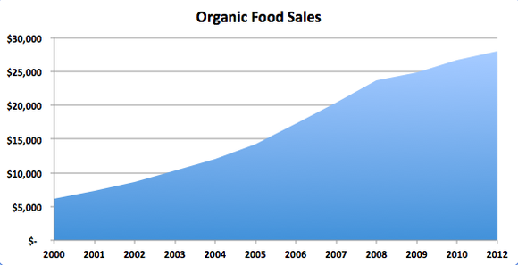 Source: USDA, Organic Trade Association. Figures in millions. 2012 figures are estimates.