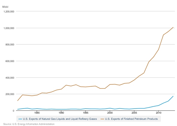 Phillips 66 is one of the largest refiners in the U.S., which is both good and bad. The bad part -- as was discussed in the bear case -- is that domestic consumption of distillates such as gas and diesel faces serious headwinds to growth. However, exports of distillates and processed natural gas liquids and refinery gases are on the rise: