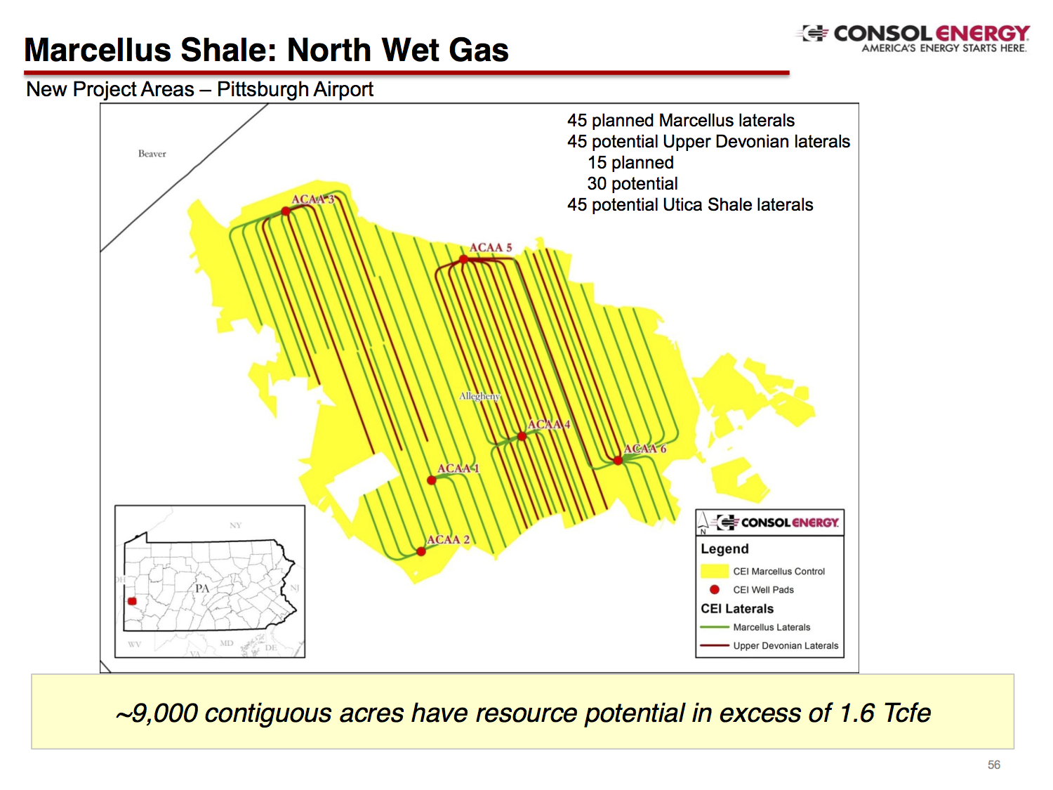In Pittsburgh's case, the airport rests on stacked formations that include the Marcellus Shale, offering CONSOL Energy a rich drilling opportunity: