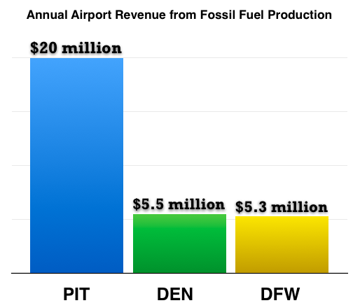The idea of drilling for oil and gas beneath an airport has been done before, at both Dallas-Fort Worth International and Denver International. The difference with Pittsburgh is in the potential revenue generation from royalties. Here's what authorities expect PIT to generate, compared to the 2013 revenue from DFW and DEN: