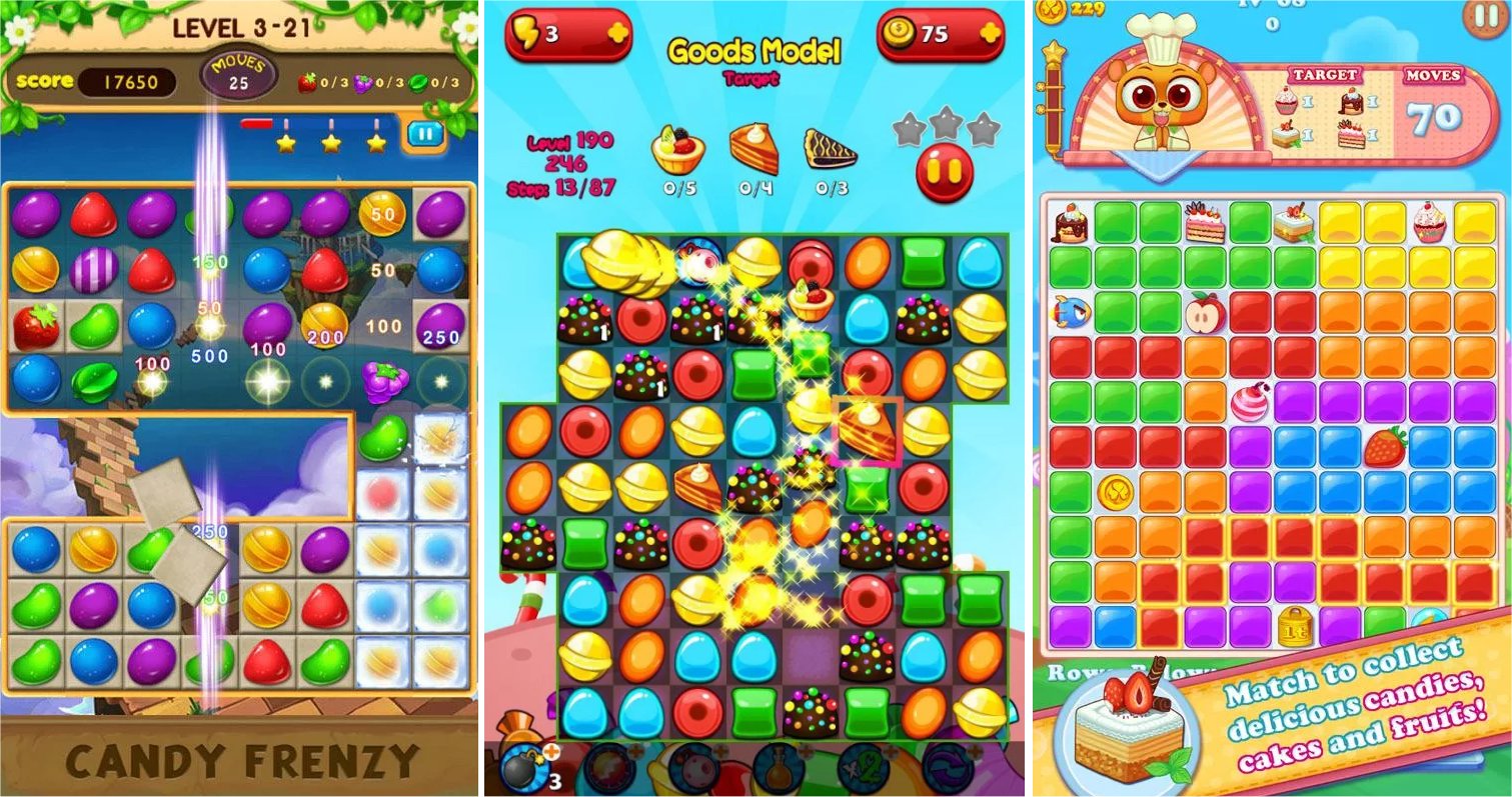 Attack of the candy clones -- Candy Frenzy, Candy Heroes, and Candy Smash. Source: Google Play.