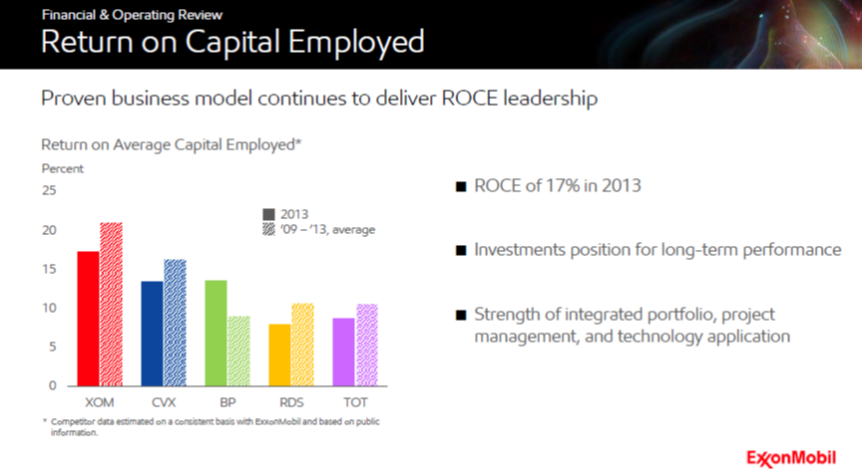 - ExxonMobil has several new megaprojects that have either just come online or will do so soon. These projects represent large amounts of unproductive capital on the books eating into returns. Once they are up and running the increased earnings should boost return levels