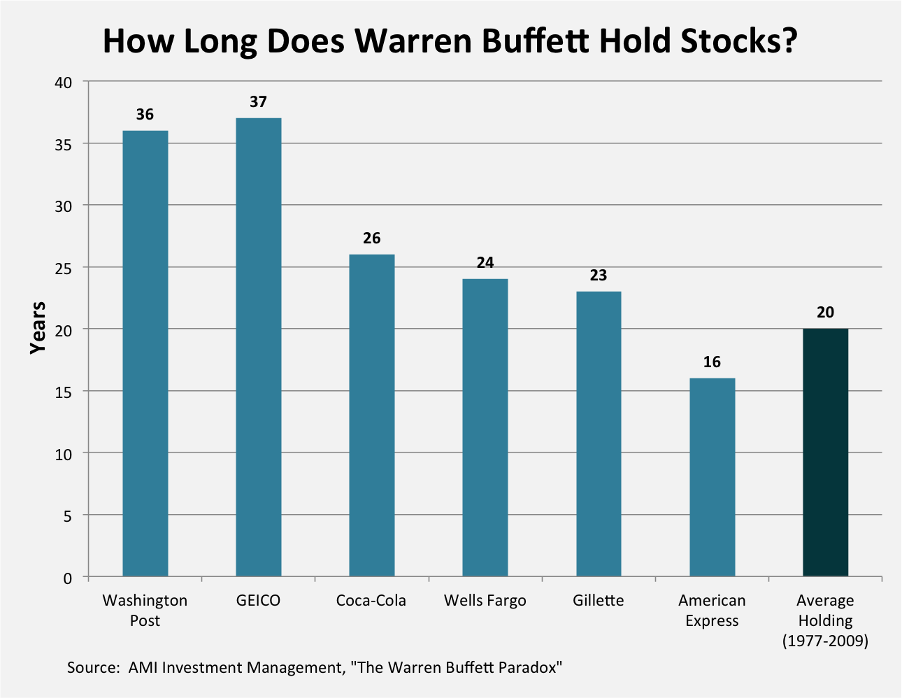 The main culprit here is a radically different perception of what stocks and the market as a whole represent. A dense cloud of short-term thinking appears to have blurred the vision of many investors, while disciples of the buy-and-hold approach -- including Warren Buffett -- have been able to remain above the fray. As our time frame contracts from years to months, Buffett's found success in a holding period that can often be measured in decades.