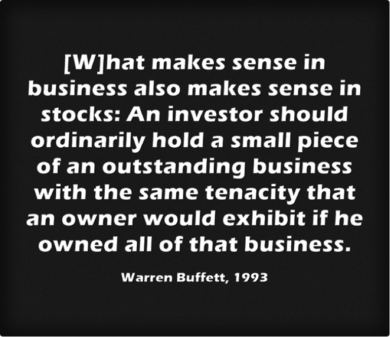 Instead of thinking like a trader, Buffett adapted a true owner's mentality. Even when Berkshire owned only a tiny slice of a company's common stock, Buffett pretended as though he owned it all. By putting himself in the shoes of an owner, Buffett acted like one. Here's how he described this tactic in his 1993 letter to shareholders:
