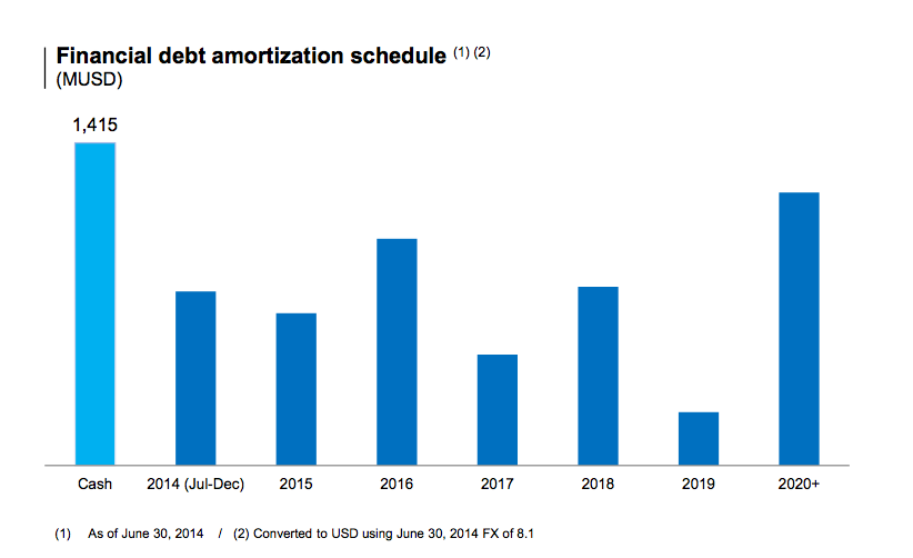 As a result of strong cash flow generation and the $1 billion bond we issued at the beginning of April this year, we ended the quarter with a cash position that fully covers our debt maturities for the next 18 months. On top of that, I feel very confident in our ability to refinance debt maturities coming due in the next couple of quarters, as they are mostly bonds issued in the local market.
